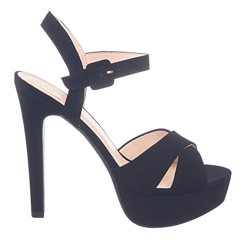 Binding : Apparel Product Description About This Shoes :These sandals features a towering high thin heel, thick platform, cross strap, adjustable ankle strap. Brand - Delicious Colors Available: Black Occasion: Formal Shoe Type: Ankle Strap Shoe Style: Ankle Strap Inner Lining: synthetic Heel Height In Inches - 5.75 Heel Style - Slim Toe Style - open-toe Platform Height In Inches - 1.50" Shaft Height In Inches - Circumference Opening - Strap Type - ankle-strap Sole - manmade All Man Made Material unless otherwise stated. Computer/Phone/Table monitors might show color differently because of its quality or calibration, we suggest you look at the photo in at least 3 monitors if you need exact color match of your shoes. 0