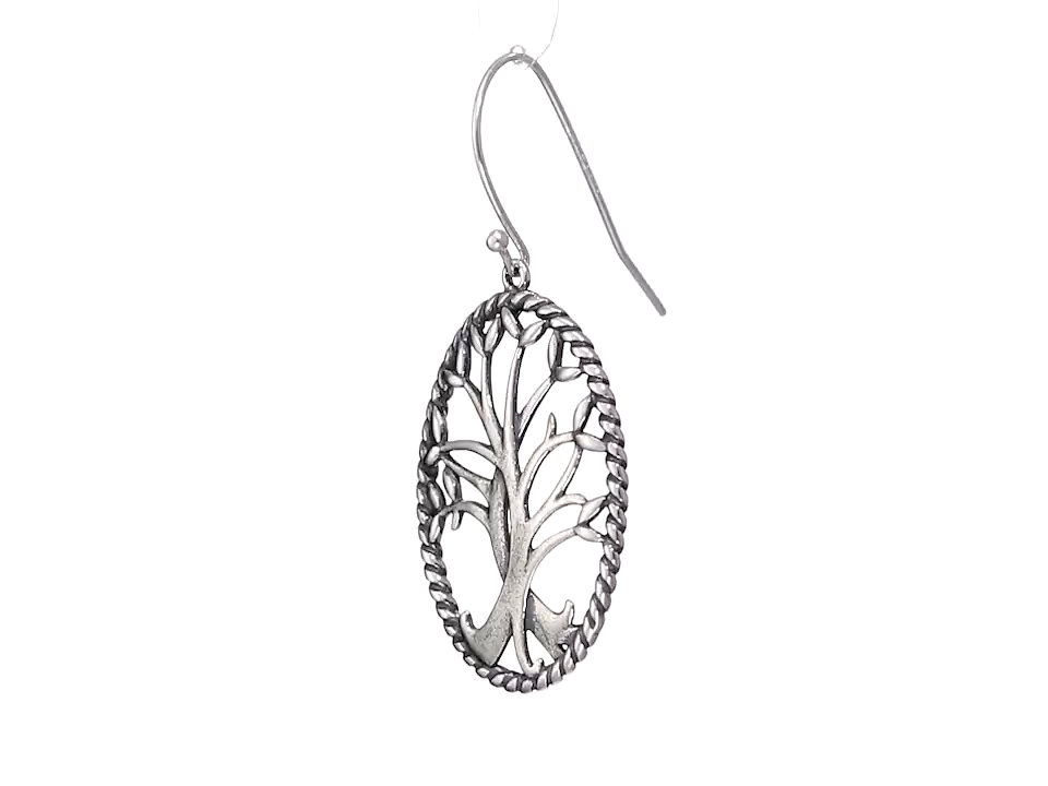 Sterling Silver Oxidized Celtic Tree of Life Oval Dangle Earrings