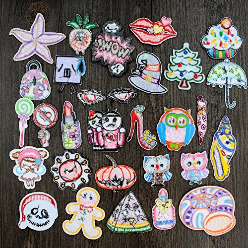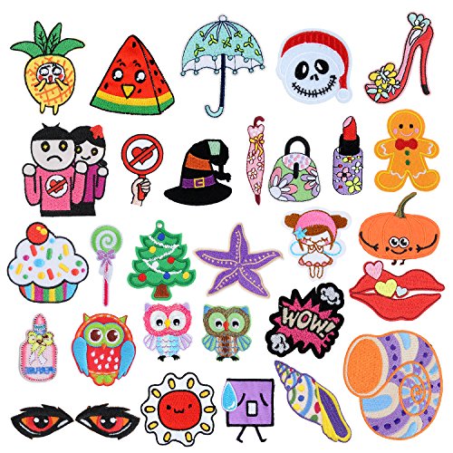 YUEAON 30pcs Patches Iron On and Sew On patch For Jeans, Jackets, DIY Clothing, Handbag, Canvas Shoes,hats