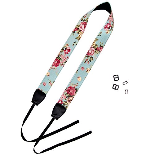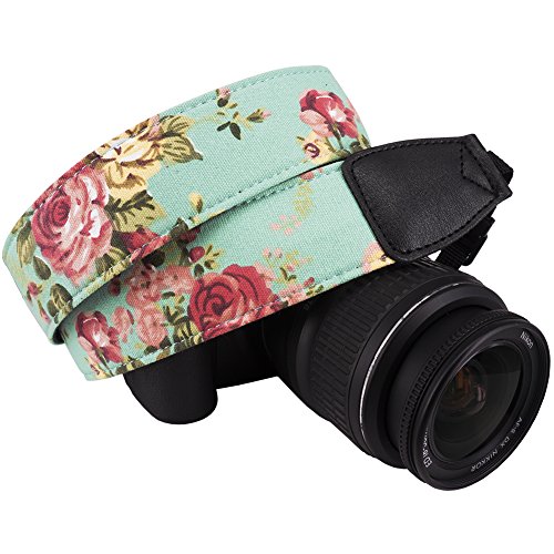 DSLR / SLR Camera Neck Shoulder Belt Strap - Wolven Cotton Canvas DSLR/SLR Camera Neck Shoulder Belt Strap for Nikon Canon Samsung Pentax Sony Olympus or Other Cameras - Green Vintage floral