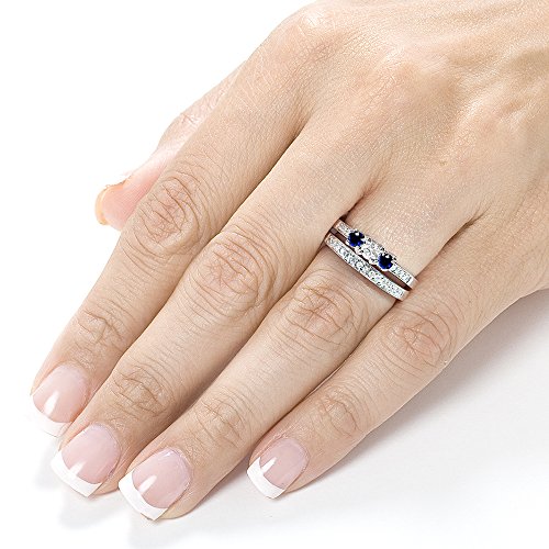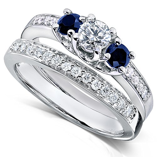 -. Title : Blue Sapphire and Diamond Bridal Ring Set 3/4 Carat (ctw) in14k White Gold