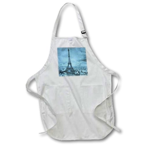 3dRose apr_6794_4 Eiffel Tower Paris France, 1889 Cyan-Full Length Apron, 22 by 30-Inch, Black