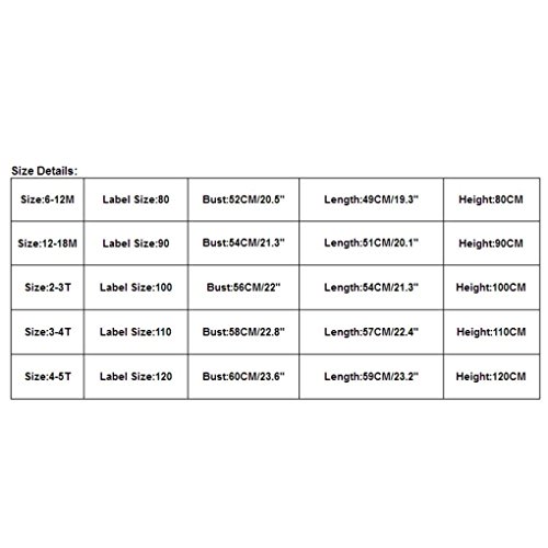 Binding : Apparel Product Description Specifications: Gender: Boy Girl Clothing Length: Regular Sleeve Style: Regular Pattern Type:?Printing Style: Cute Material:?Cotton Blended Sleeve Length:Sleeveless Package include:1PC?Jumpsuit Suitable for?ages?in?children?(0-5T) NOTE: Please compare the detail sizes with yours before you buy!!! Use similar clothing to compare with the size. Size Details: 1.To Make sure you get the right size,please refer to our size chart before buying,if you are not sure about size,pls email us your exact body measurement ,so we can give you some suggestion on how to choose the right size,thanks for your understanding 2.Mansual measurement may exsit 1~3cm difference Size:6-12M Label Size:80 Bust:52CM/20.5" Length:49CM/19.3" Height:80CM Size:12-18M Label Size:90 Bust:54CM/21.3" Length:51CM/20.1" Height:90CM Size:2-3T Label Size:100 Bust:56CM/22" Length:54CM/21.3" Height:100CM Size:3-4T Label Size:110 Bust:58CM/22.8" Length:57CM/22.4" Height:110CM Size:4-5T Label Size:120 Bust:60CM/23.6" Length:59CM/23.2" Height:120CM 0