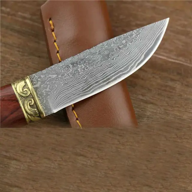 2017 높은 탄소 스틸 모방 다마스커스 나이프 57 HRC 수제 단조 야외 생존 사냥 칼 전술 포켓 나이프 EDC