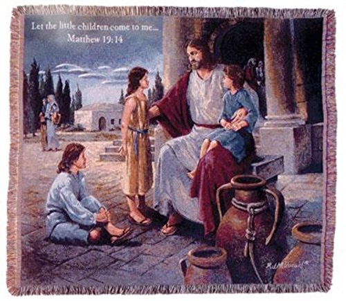 "Let the Children Come" Matthew 19:14 Jesus Tapestry Throw Blanket 50" x 60"