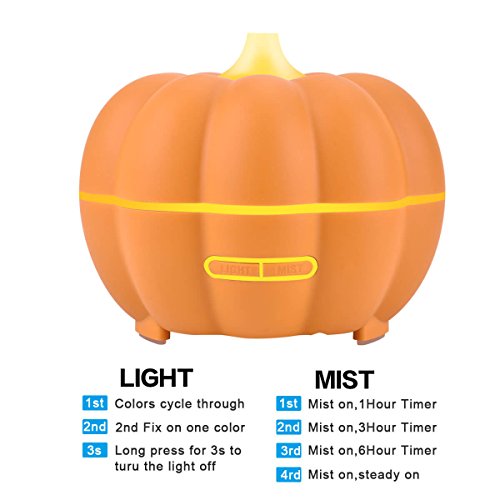 Essential Oil Diffuser Humidifier Vaporizer - 400ml Aromatherapy Ultrasonic Cool Mist Air 7 Colors for Home Bedroom Office Living Room Yoga Spa Baby Room Holiday Gifts (Pumpkin)