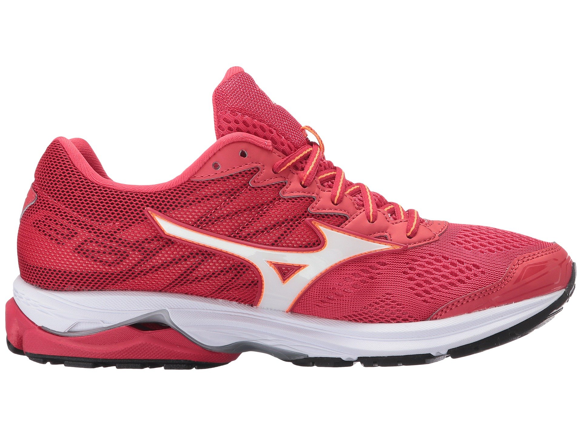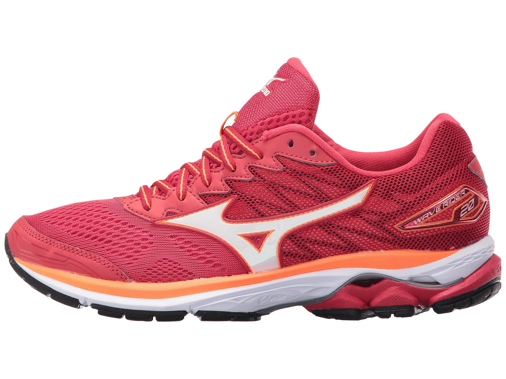 | Product Information SKU: #8803128Let the euphoric rush of your ride wash over you when you cruise in the Mizuno? Wave Rider 20 running shoe.Predecessor: Wave Rider 19.Support Type: Neutral to underpronation (supination).Cushioning: Lightweight, flexible response. Surface: Road. Differential: 12 mm.Breathable mesh and synthetic upper materials. 'Triple Zone' engineered mesh boosts breathability, movement, and hold. DynaMotion Fit upper moves seamlessly with the foot.Lace-up closure.Lightly padded tongue and collar. Soft collar and interior lining helps reduce the likelihood of irritation. Removable foam insole.Top midsole layer features U4ic compound for 33% more response and greater durability. U4ic midsole works together with the Wave plate for a softer underfoot feel and smoother transitions.Redesigned Neutral Wave? plate provides softer cushioning, and enhanced response. Articulated U4icX heel wedge supplies greater cushioning for a softer feel. X10 carbon rubber provides long-lasting wear. SmoothRide engineering promotes a great transition from heel-to-toe with each stride.Imported. Product measurements were taken using size 9.5, width B - Medium. Please note that measurements may vary by size.Weight of footwear is based on a single item, not a pair.Measurements: Weight: 9 oz |