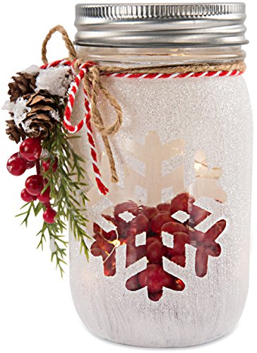 Berry and Bright LED Lite Mason Jar Light up White Sparkly Snowflake Cut Out