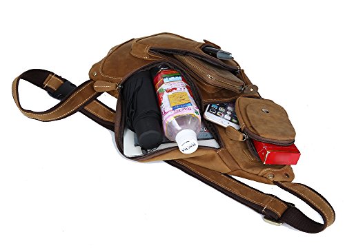 Texbo Genuine Cowhide Leather Cross Body Sling Bag Backpack Bag