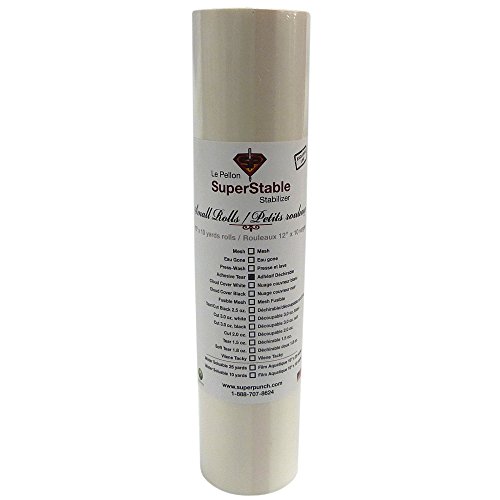 Adhesive Peel and Stick Tear Away Stabilizer White 2.0 oz 12 inch x 10 Yard Roll. SuperStable Embroidery Stabilizer Backing