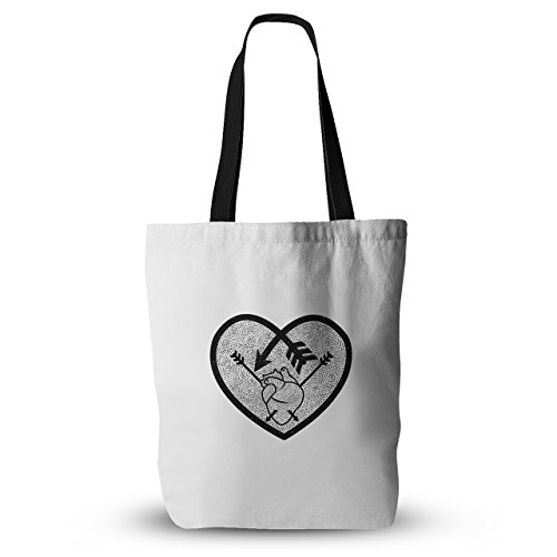 KESS InHouse BarmalisiRTB "Heart Arrow" Black White Everything Tote Bag, 18" x 18", Multicolor