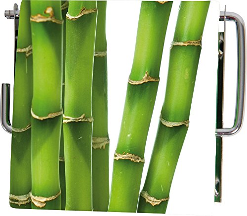 - It features green bamboo sticks on a white background