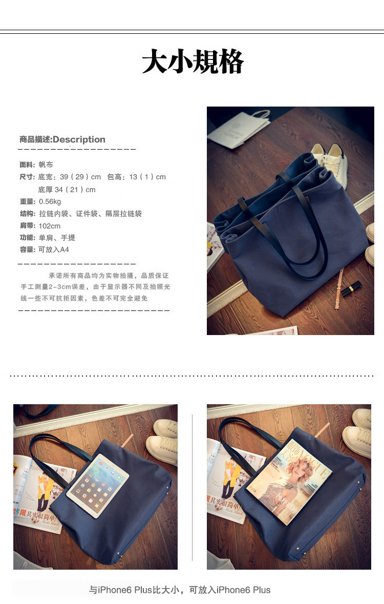韩国复古休闲时尚简约帆布包单肩包大容量大包子母包手提包潮女包