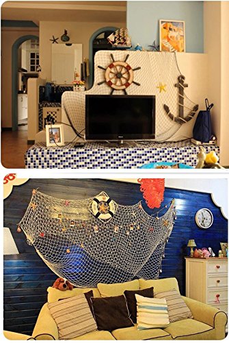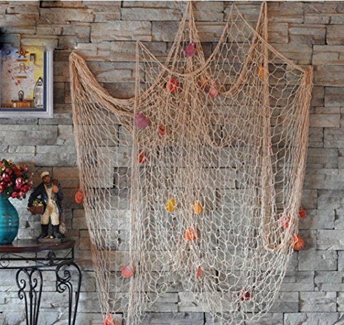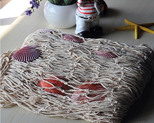 BESTNEWIE Fishing Net Decor, Wall Decor, Decorative Fish Net With Shells, Mediterranean Nautical Style, 79 x 59inch (Creamy white)