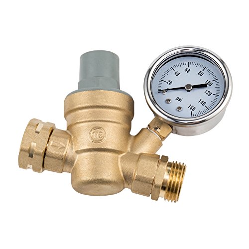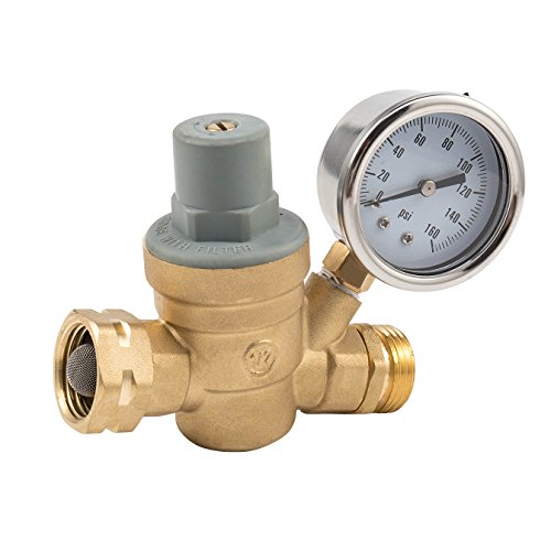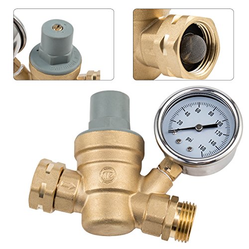 Stop Now Water Pressure Regulator Brass Lead-free Adjustable Water Pressure Regulator regulating valve DN20 NH 3/4" thread with Gauge for RV, and Inlet Screened Filter