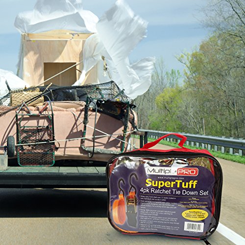 MultiplePRO SuperTuff 15ft Ratchet Tie Down Straps – 4 Pack with Heavy Duty 1,500 lbs Breaking Strength