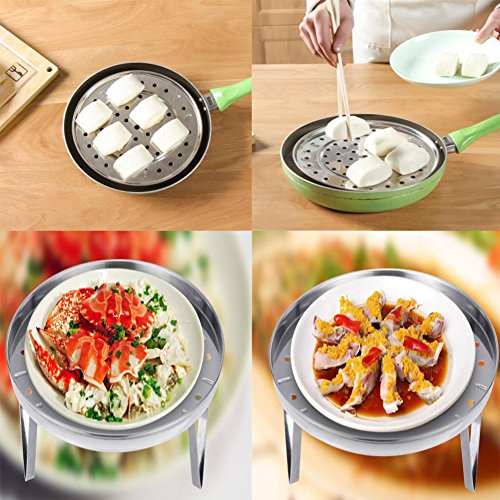 LEGS ARE TALL ENOUGH - The height of the legs is 4cm,No need to add water all the time or worry about the water boiling up onto the food,And if you stack two or three steamer racks together,there is enough space between layers so you could steam lots of food