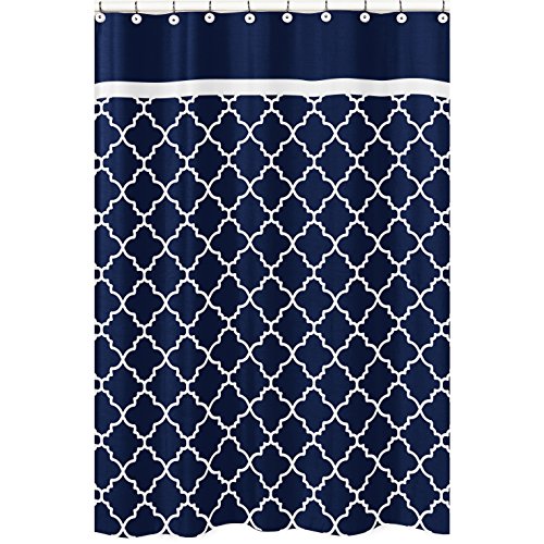 Navy Blue and White Modern Bathroom Fabric Bath Shower Curtain for Trellis Lattice Collection by Sweet Jojo Designs