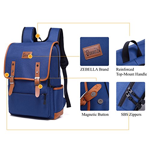 -. Title : Vintage Laptop Backpack Waterproof Tear Resistant School Bag Travel Rucksack