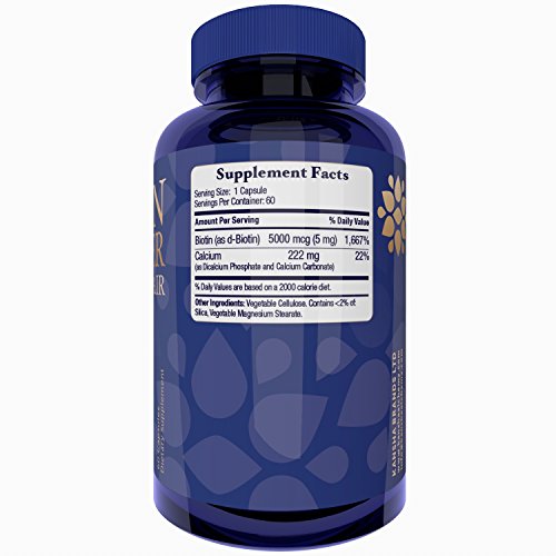 -. Title : Essential Hair Growth and Biotin 5,000 mcg to Stimulate Stronger Longer Lustrous Hair - Helps Prevent Balding and Thinning - Enhances Healthy Skin and Nails for Women of All Ages by Kansha Alchemy