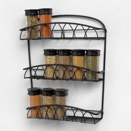 -. Title : Spectrum 3-Tier, 15 Bottle Wall Mount Spice Rack, Black Twist