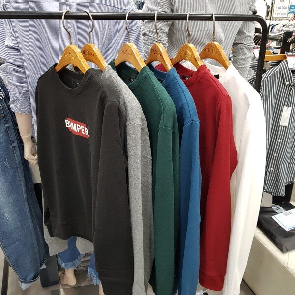 남여공용 BUMPER 맨투맨 입니다.?총 6가지 컬러?블랙, 그레이,그린 ,블루,레드,화이트 로 구성되어 있고90,95,100,105,110까지 사이즈가 폭넓게 나왔습니다.?남여공용 사이즈라 본인 사이즈 맞게 주문해 주시면 됩니다.?베이직하게 어디든 매치할 수 있고?원색포인트로 하나만으로도 포인트 줄 수 있는 제품이라?쉽게쉽게 매치할 수 있습니다.기본 베이직 라인으로 나와 정사이즈 OR 한사이즈 크게 주문 권장해 드립니다.
