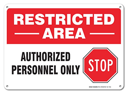 Restricted Area Sign, Large Rust Free 10x7" Aluminum, For Indoor or Outdoor Use - By SIGO SIGNS