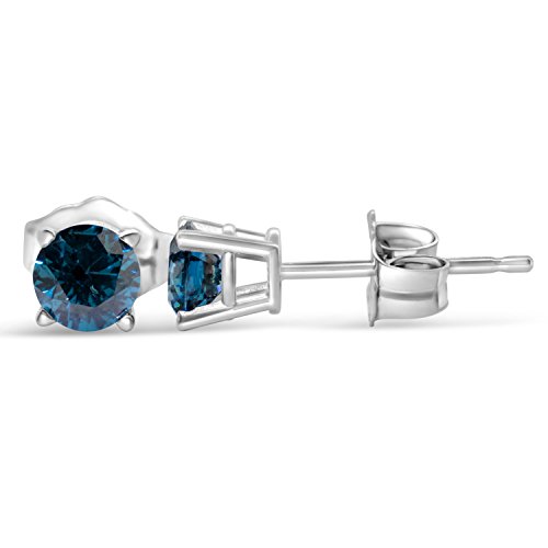 -. Title : 1/2cttw Blue Diamond Round Stud Earrings 14k in White Gold