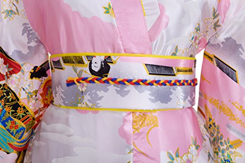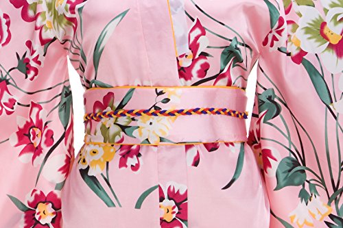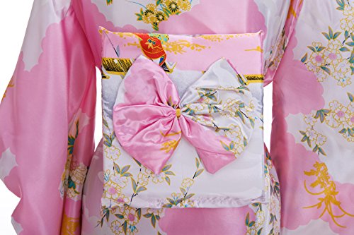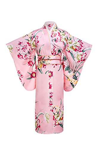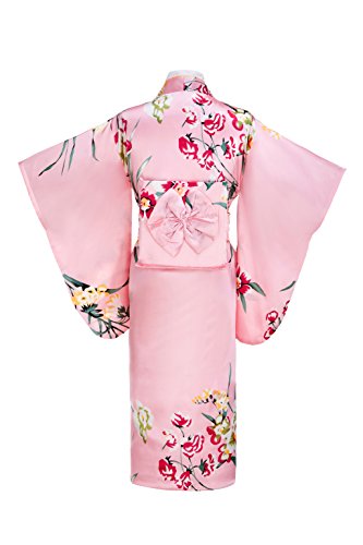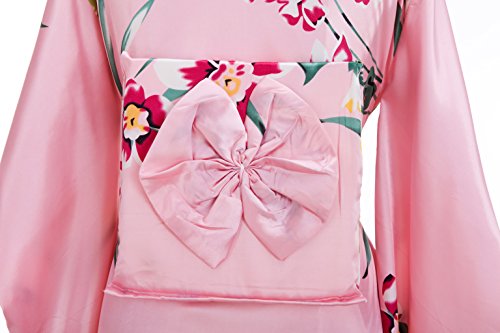 Old-to-new Women's Silk Traditional Japanese Kimono Robe with Floral Print Pink