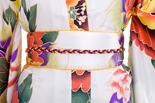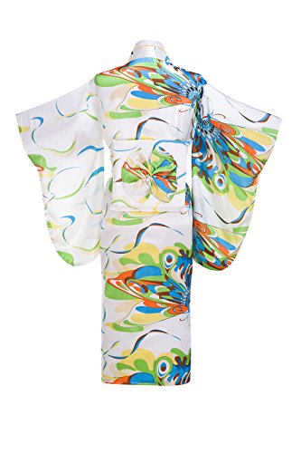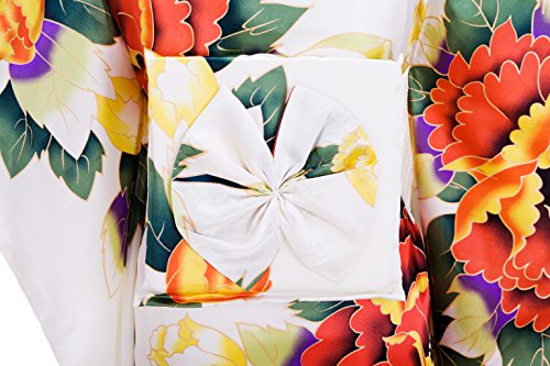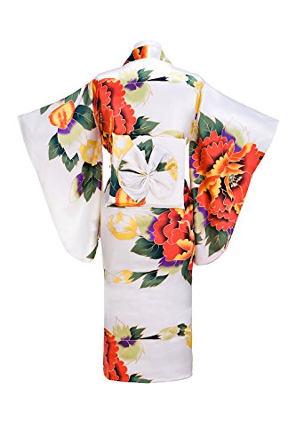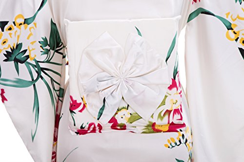 Old-to-new Women's Silk Traditional Japanese Kimono Robe with Floral Print White A