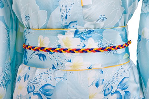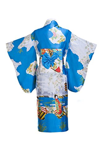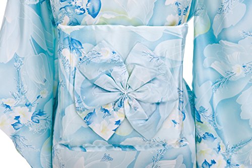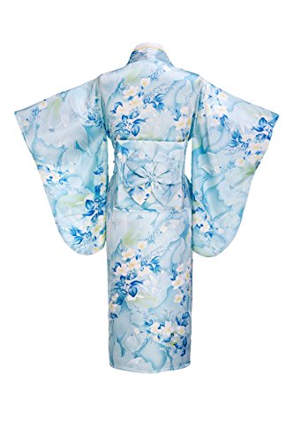 Old-to-new Women's Silk Traditional Japanese Kimono Robe with Floral Print Light Blue