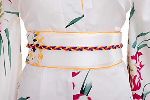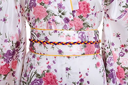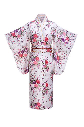 Old-to-new Women's Silk Traditional Japanese Kimono Robe with Floral Print White D