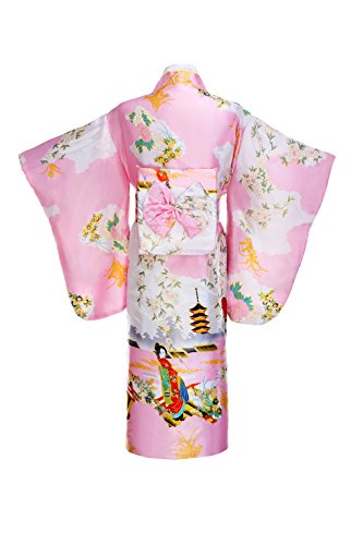 Old-to-new Women's Silk Traditional Japanese Kimono Robe with Pagoda Print Pink