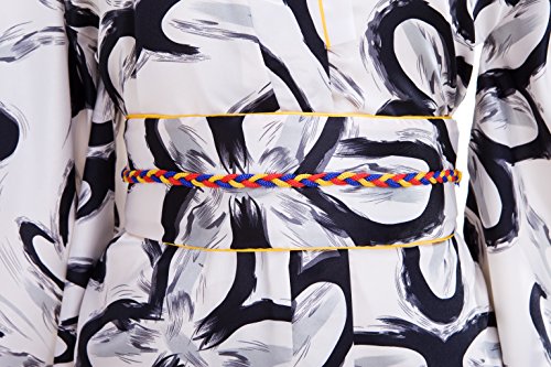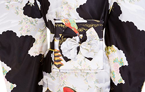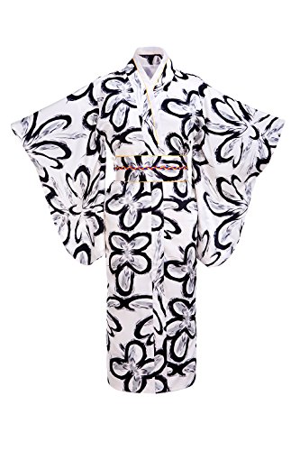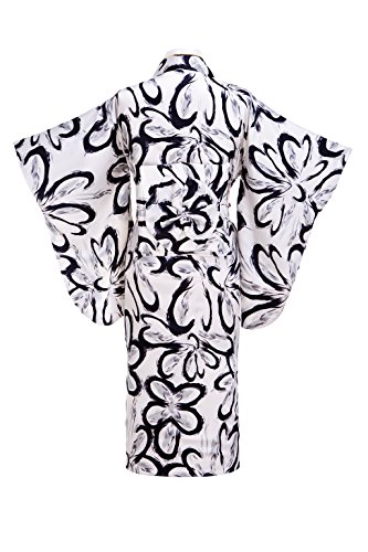 Old-to-new Women's Silk Traditional Japanese Kimono Robe with Floral Print White& Black