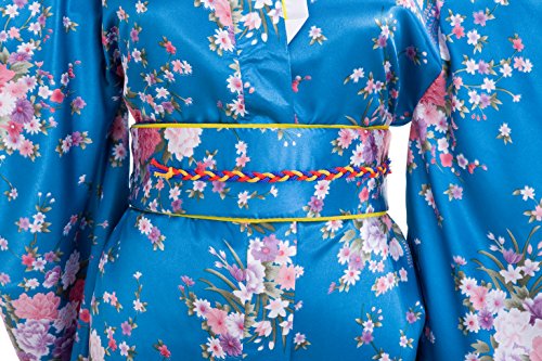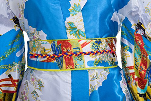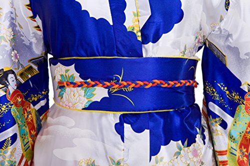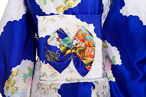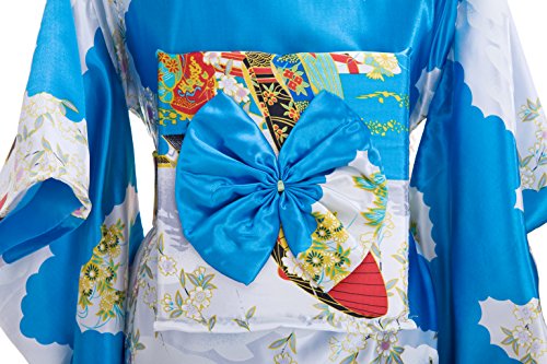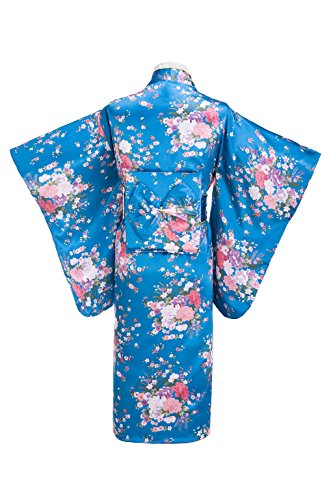Old-to-new Women's Silk Traditional Japanese Kimono Robe with Floral Print Blue