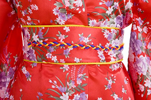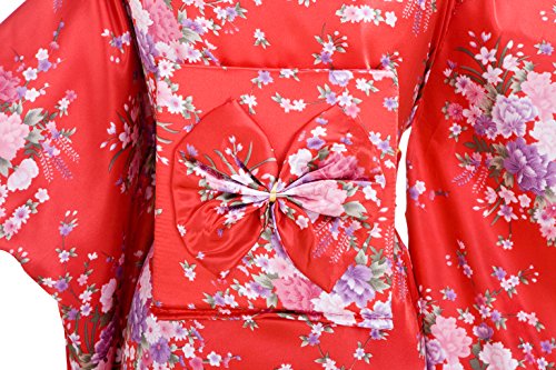 Old-to-new Women's Silk Traditional Japanese Kimono Robe with Floral Print Red