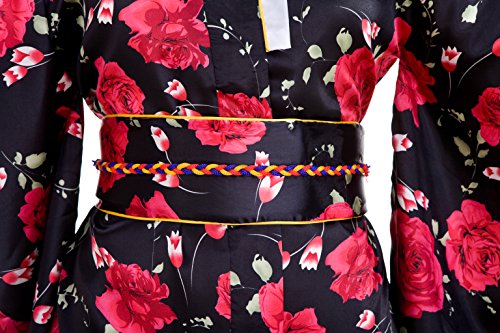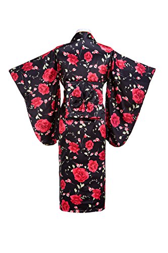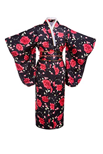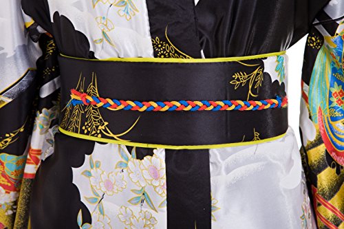 Old-to-new Women's Silk Traditional Japanese Kimono Robe with Floral Print Black