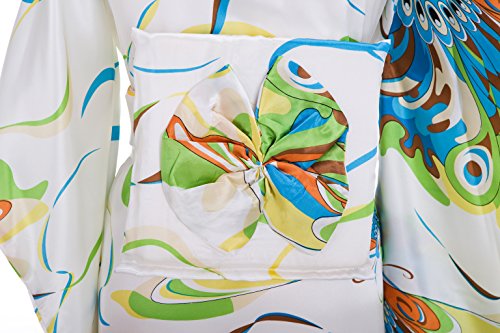 Old-to-new Women's Silk Traditional Japanese Kimono Robe with Floral Print White& Green