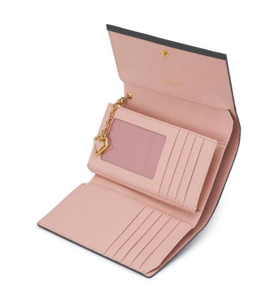 깔끔한 디자인에 금장 하트 로고 장식으로 포인트를 준 중지갑입니다.
