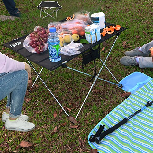 Portable Folding Camping Table Ultralight - Datechip Collapsible Travel Table with Table Cover,Aluminum Legs,Lightweight Foldable for Outdoor/Indoor Tent Hiking Picnic Beach Fishing(Black)