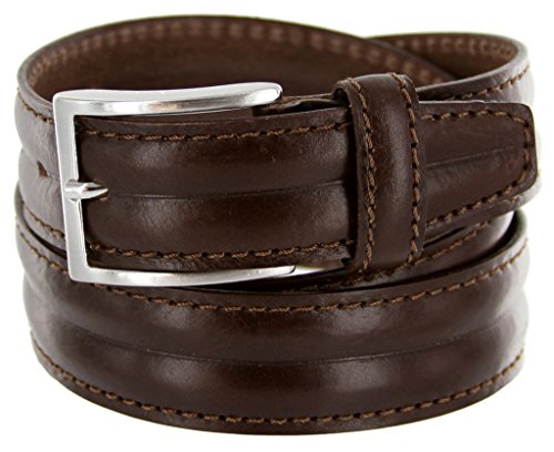 Binding : Apparel Product Description Stylish dress belt fully constructed from fine Italian Cowhide. Paired with a silver-finish metal buckle. Thick edge stitching details adds a great finishing touch to a high quality belt. Made in Italy in four colors: Black, Brown, Tan, and Light Brown. Sizing: Measure around where you wear the belt, with your pants on, and order the closest size. 0