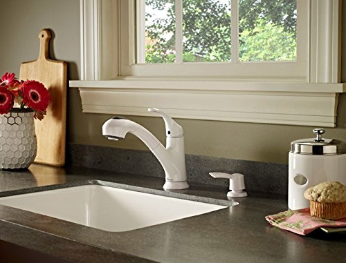 Pfister FWKP701W Shelton 1-Handle Pull-Out Kitchen Faucet with Soap Dispenser, White