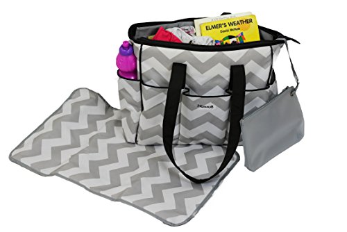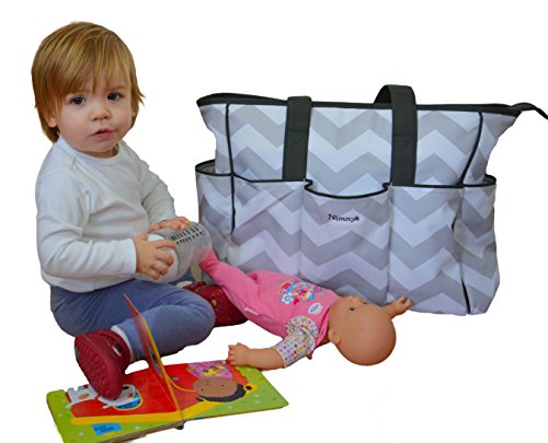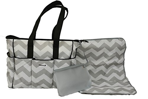 NimNik Baby Premium Diaper Tote Bag Chevron w/ Changing Mat Designer Diapers Bag for Girls Boys Twi