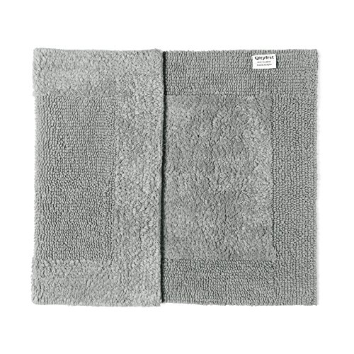 Bath Mat Reversible 100% Premium Cotton 1900 GSM Size 21”x34” Bathroom Mats QLTYFRST Luxurious Bath Rug Extra Plush Absorbent Grey