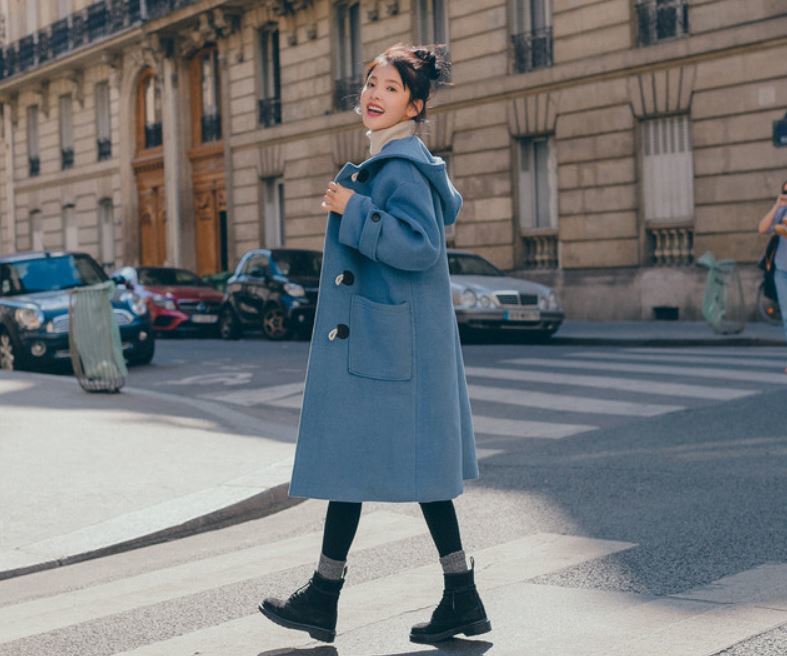 普段挑戦しにくいブルーのアウターも落ち着いた色味なら試しやすいですね。