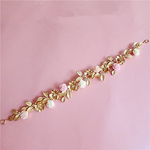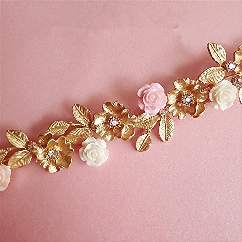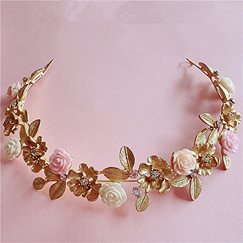 Lsinyan Gold Leaf Ceramic Flower Hair Bands Wedding Dress with Jewelry Baroque Crown Headdress Bride Water Drill Bit Flower Hair Accessories