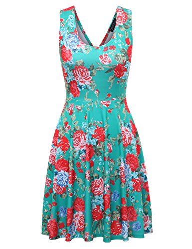 OMEYA WL Womens Casual Fit and Flare Floral Sleeveless Dress