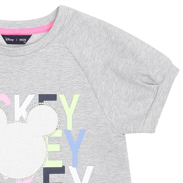 ●상품설명- 미니 쮸리 원단의 여아 반팔 티셔츠로 얇은 긴팔과 같이 코디하여 입어도 좋으며, 앞판 미키 타이포가 귀여우며 핫피스 장식으로 포인트를 준 아이템. 넉넉한 기장감으로 편안하게 착용 가능.