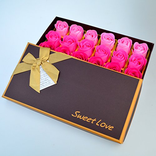 -. Feature : Paper Gift Box Package: It includes 18 PCS Aretificial rose soaps. Box size: 9.1 x 4.7 x 1.9 inches / 23*12*4.8cm. Flower size: 1.6"/4cm in hight, 1.2"/3cm in diameter.Ideal gift choice. Also can be used as an ornament, it can also be used to make sachets. / Ideal Gift on Special Day: It is the best gifts choice for girl friend, sister, mom, mother, granmother, and other female friend on Valentine's day, mother's day, christmas day, women's day, birthday, marriage, anniversary,etc. / Vivid and beautiful flowers petals with smooth surface, bright colors. Very stylish, elegant, suitable for gifts, advertising promotion. Easy to carry. It is also a great choice for newlyweds to go on a honeymoon tour. / Contains cleansing ingredients to cleanse skin Contains glycerin, moisturizing. Water can dissolve when encountered. After wet water wash, rich foam, delicate texture. With Floral scent, you can adjust emotions and relax your tired body. / How to Use: After taking a petal and moisten it, clean your hands and skin like regular soap. You can also put multiple petals into the bathtub and enjoy a super comfortable petal aromatherapy bath.