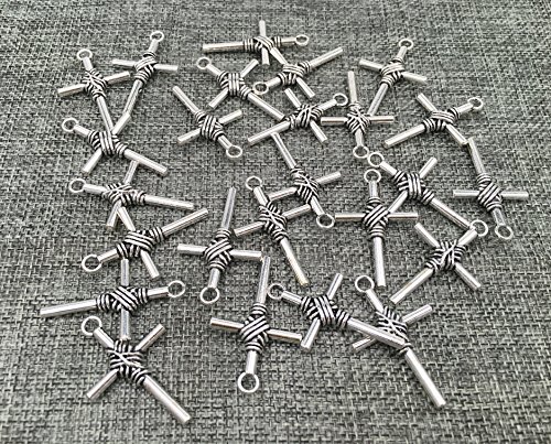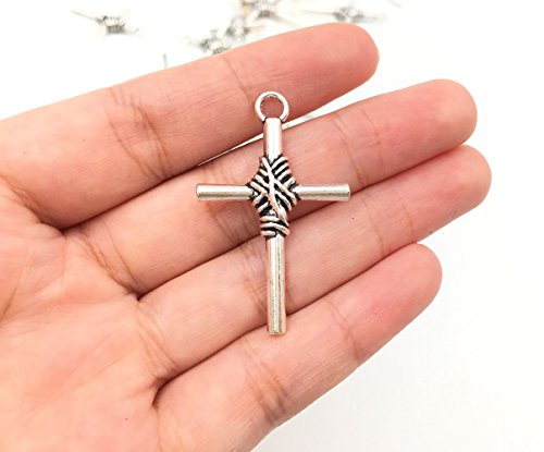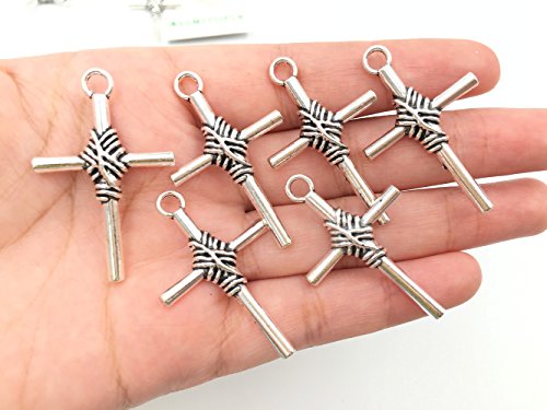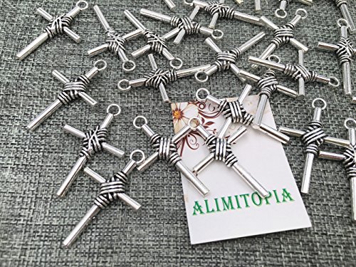 25pcs Christian Cross Charms Pendants for DIY Jewelry Making Accessories By Alimitopia(Antique Silver)